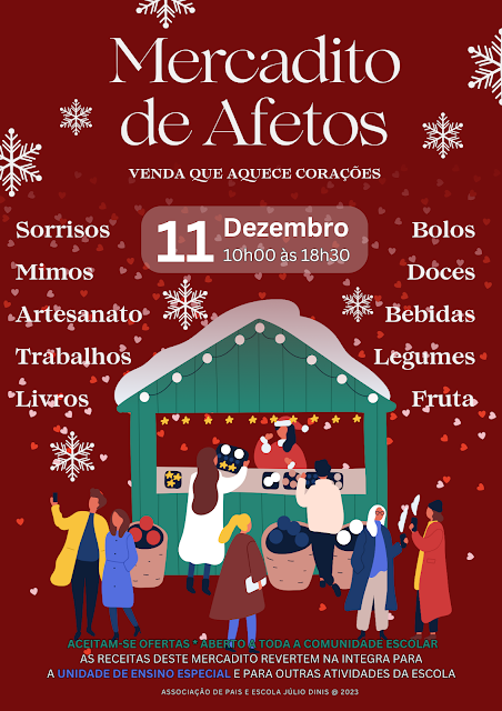 No próximo dia 11 de dezembro, 2.ª feira, entre as 10h00 e as 18h30, irá ter lugar na Escola Júlio Dinis o Mercadito de Afetos.